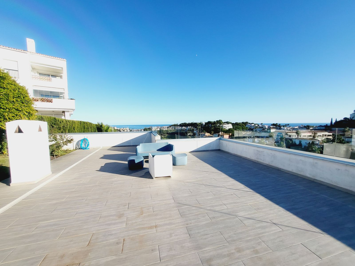 SUPERB HIGH QUALITY AND EXTREMELY SPACIOUS TWO BEDROOM TOP FLOOR APARTMENT LOCATED IN A MUCH SOUGHT-AFTER COMMUNITY IN MIRAFLORES THAT DIRECTLY OVERLOOKS MIRAFLORES GOLF COURSE. THE PROPERTY BOASTS A LARGE OPRN SUNNY TERRACE WHICH ENJOYS OPEN VIEWS TO MIRAFLORES GOLF AND THE SEA BEYOND. THE APARTMENT ITSELF HAS BEEN FINISHED TO VERY HIGH STANDARDS THROUGHOUT AND HAS ALSO BEEN UPGRADED RECENTLY WITH A STUNNING LUXURY OPEN PLAN KITCHEN AND BATHTOOMS THAT BOTH FEATURE WALK-IN SHOWERS.