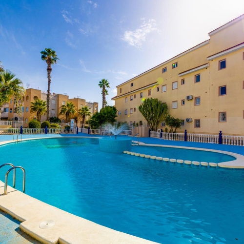 A one-bedroom apartment in Torrevieja with a total area of 51 square meters. The property features a spacious living room, a kitchen, a balcony, and a bathroom. The apartment is ready to move in. It is conveniently located close to all amenities, including banks and shops.