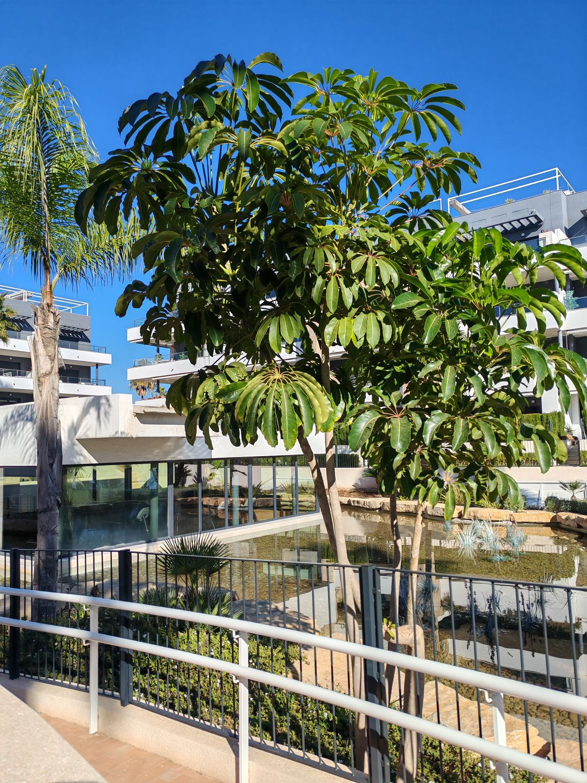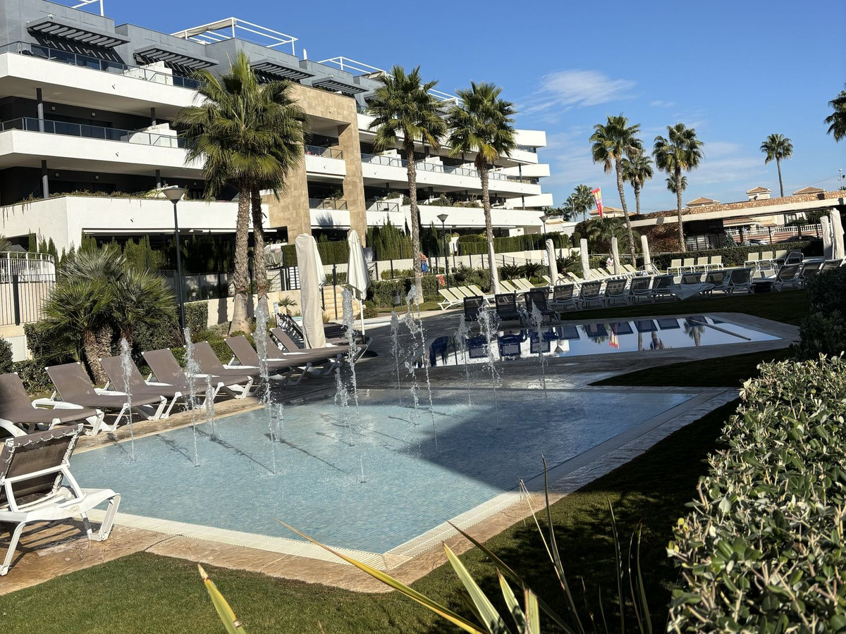 Lyxig takvåning med fantastisk utsikt i ett bostadsområde med 4 uppvärmda pooler, jacuzzi, gym, bastu, lekplats och vackra trädgårdar.