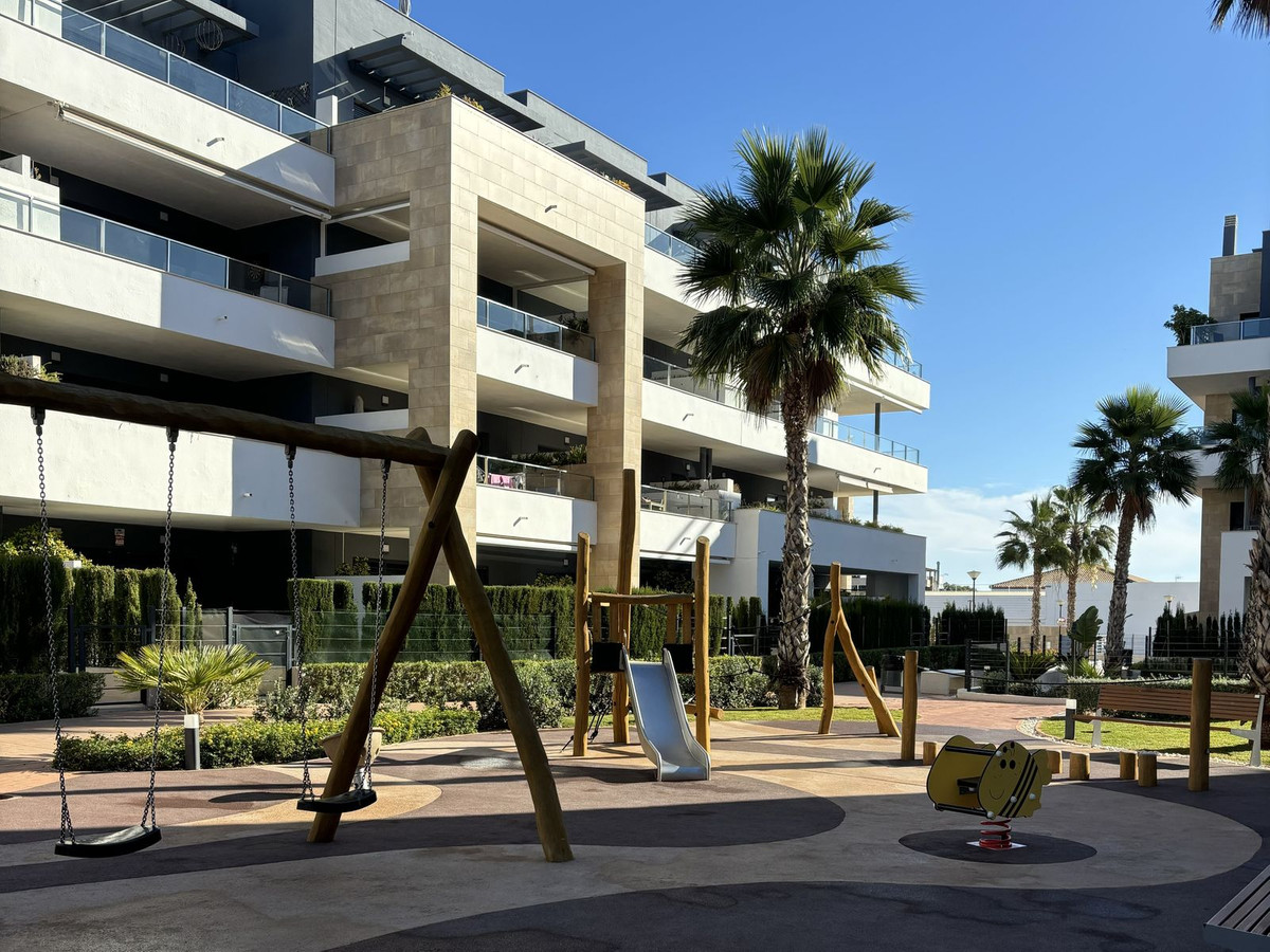 Garage och förråd (6 m2) ingår i priset. 140 m till Mercadona, restauranger och apotek. 750 m till Playa Flamenca-stranden. 24-timmarsövervakning i bostadsområdet.