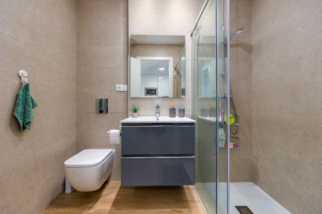 The home stands out for its modern and bright design. It has a spacious living-dining room with an open kitchen fully equipped with state-of-the-art appliances and access to a utility room and laundry area. There are 2 double bedrooms with built-in wardrobes and 2 full bathrooms with showers, one of them en suite. From the living room and one of the bedrooms, you can access a 60 m² terrace with a private garden. Its south-facing layout provides plenty of sunlight, making it ideal for enjoying the Mediterranean climate year-round.