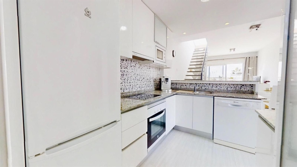 The penthouse has 2 bedrooms, 1 bathroom, american style kitchen with utility room, living room with dining area, terrace and solarium. There is a very nice communal pool and off road parking area.
