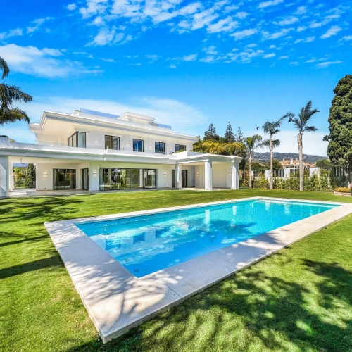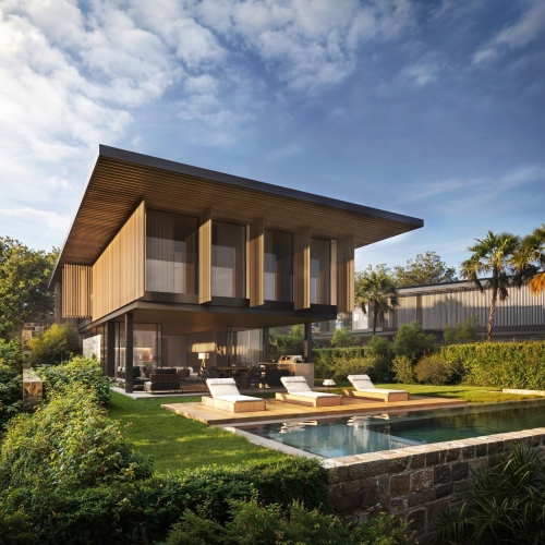 Villan är färdigställd med högkvalitativa material som storformat porslinsgolv, dubbelglasade aluminium- eller PVC-fönster med valfria persienner, höga tak gipsskivor undertak. Detaljer i natursten eller träpaneler förskönar fasaden. Tillval: fullt utrustat kök, smart hem, larm, golvvärme, pool, källare eller solenergisystem.