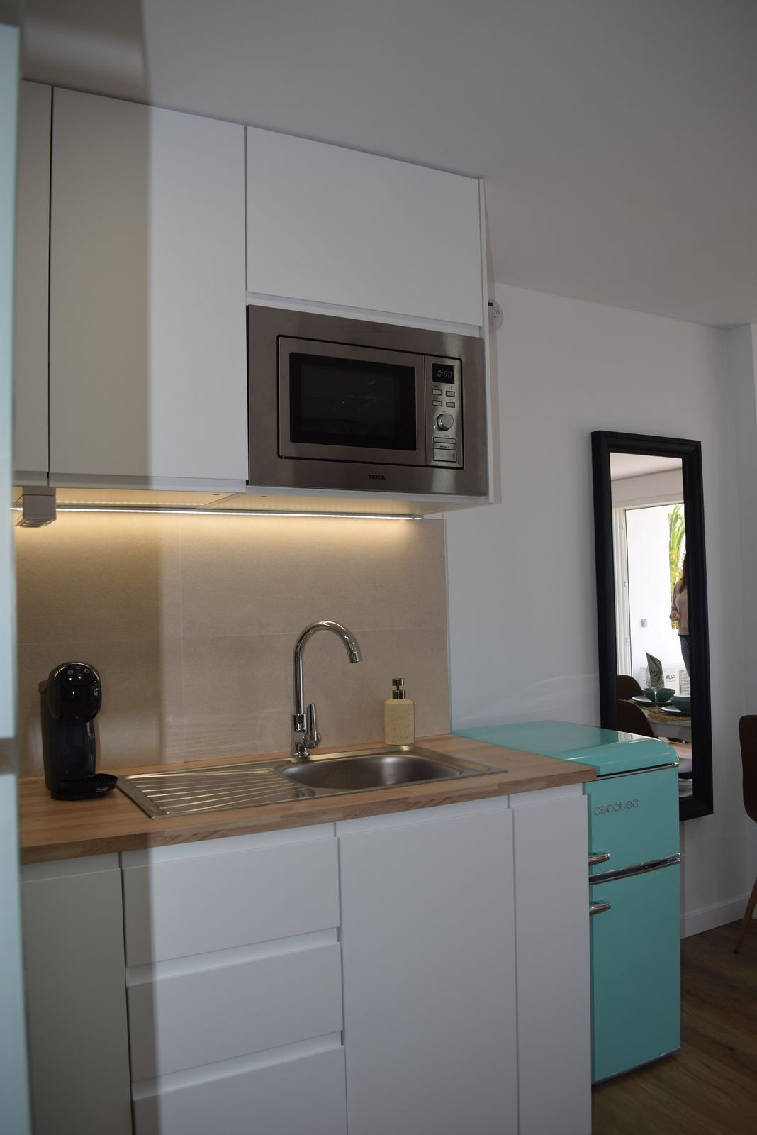 The property has been renovated from scratch with impeccable workmanship: brand new electrical wiring and plumbing. Its 53 m² built (40 m² useful) are distributed in a functional space featuring a modern equipped kitchen (including washing machine and dishwasher) and a bathroom with contemporary finishes. The living/sleeping area opens onto a spectacular terrace.