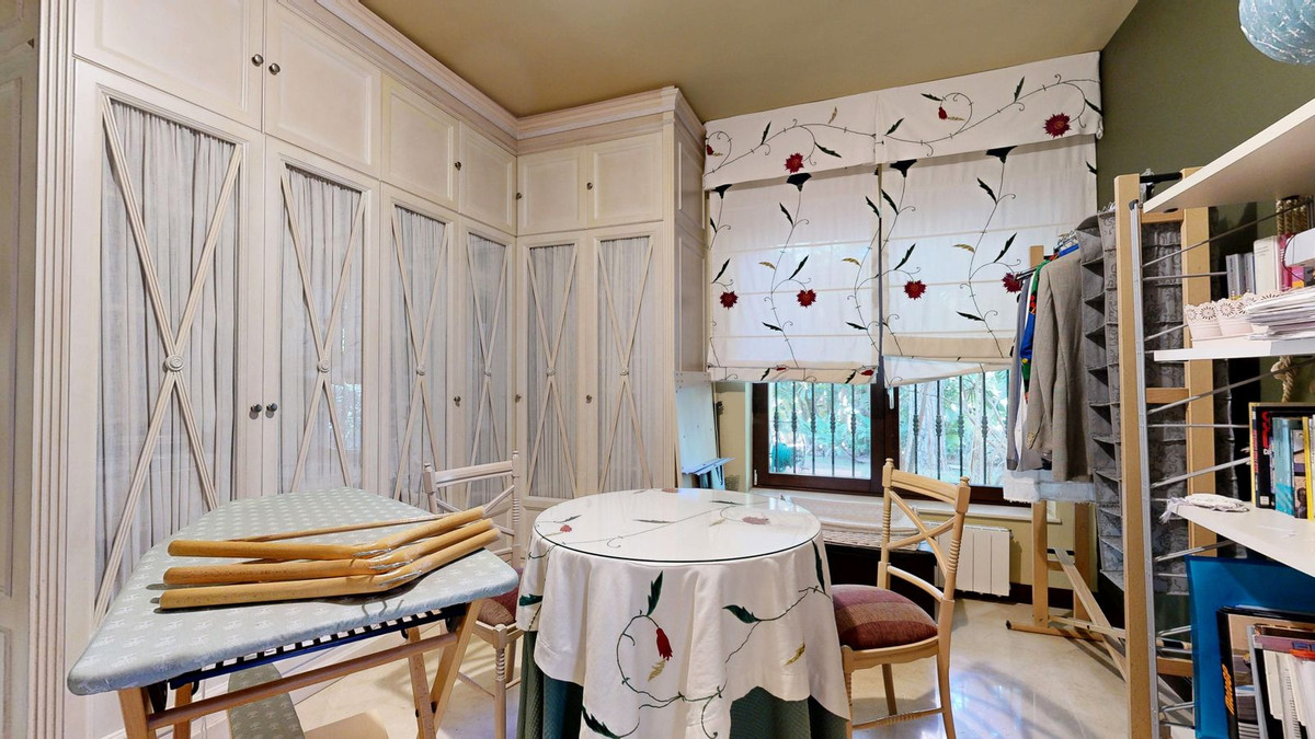 Inside, the home features three classic-style living rooms, perfect for creating different spaces for entertainment and relaxation. The villa offers 7 bedrooms, including a spacious master suite with a fireplace and direct access to the garden, providing an intimate and cozy atmosphere.