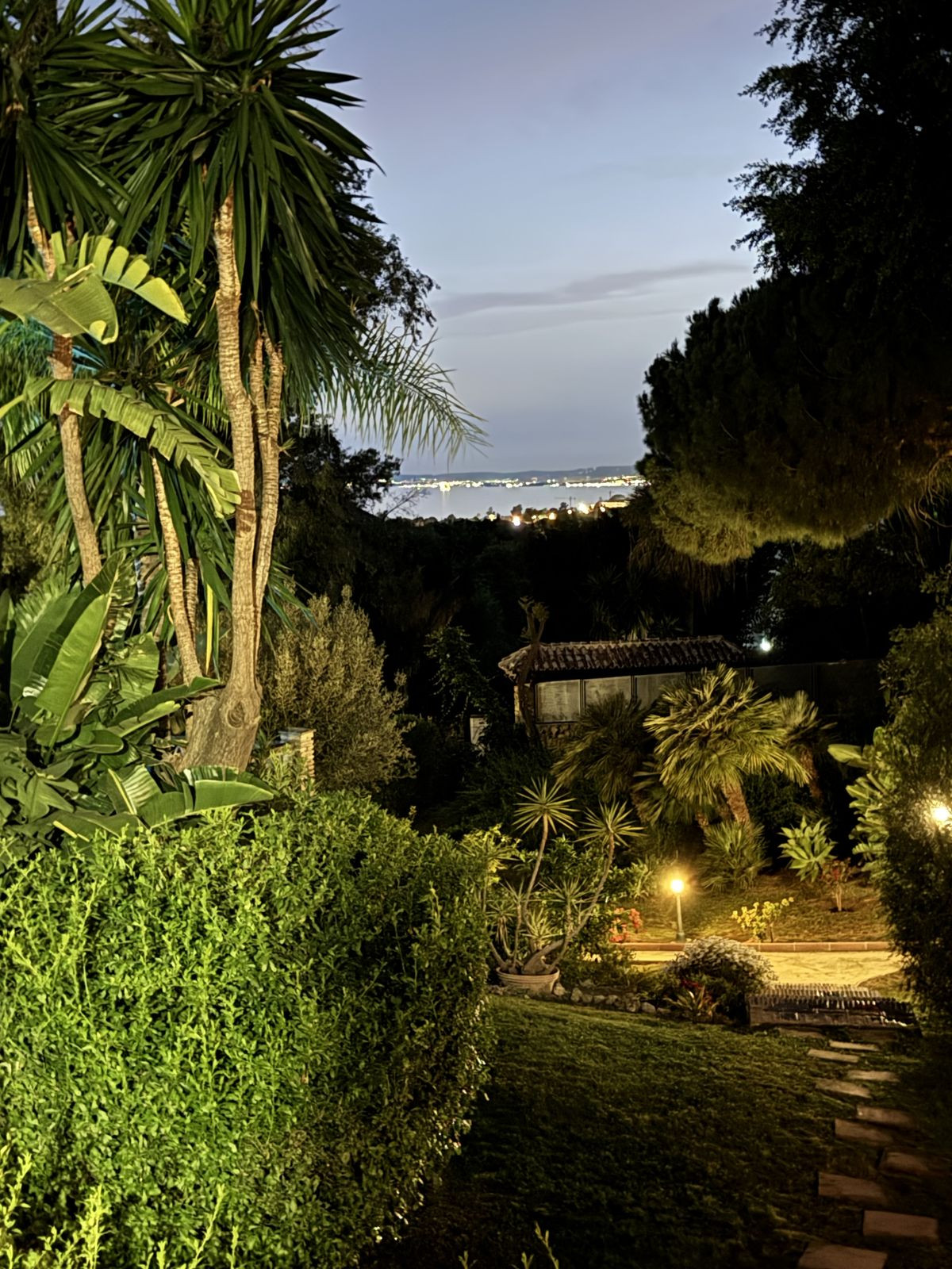The villa's gardens offer an exceptional environment for outdoor living, featuring a large swimming pool, shaded lounge areas, mature trees and landscaped gardens. From the main terrace, beautiful sea views enhance the relaxing atmosphere.