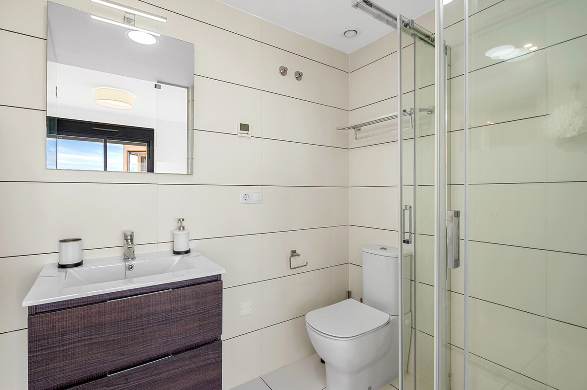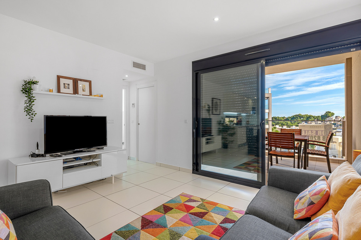 This stunning modern second floor apartment with 2 bedrooms, 2 bathrooms and private rooftop terrace/solarium is situated in Villamartin, Alicante only a few minutes walk to all local amenities (restaurants, bars and shops).