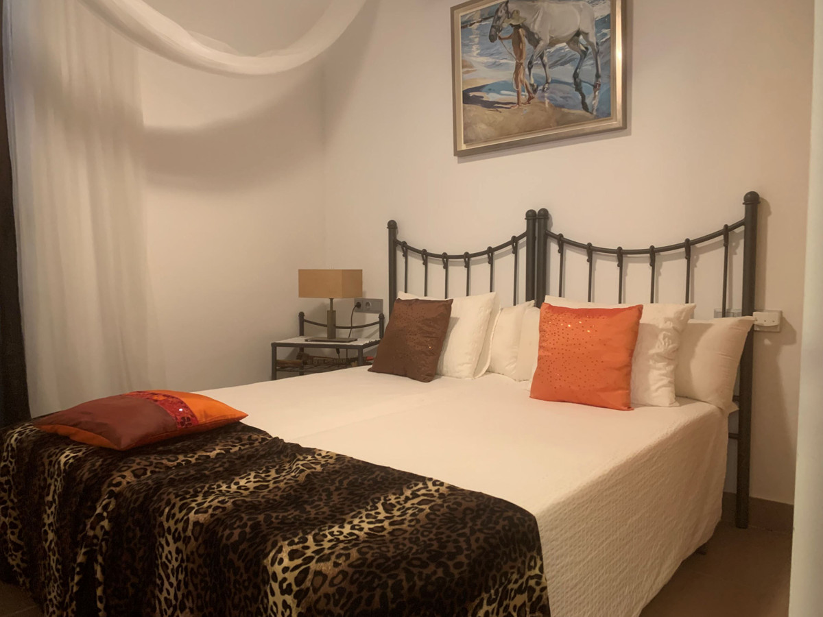 De två sovrummen är möblerade med dubbelsängar och sängbord, båda sovrummen har även platsbyggda garderober.