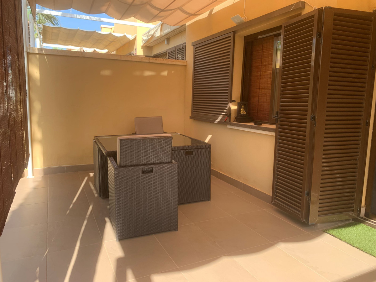 Terrassen har ett soligt läge och det finns plats för solstolar eller loungemöbler. De två uteplatserna i markplan är rymliga och det finns plats för sittgrupper och solstolar om så önskas.