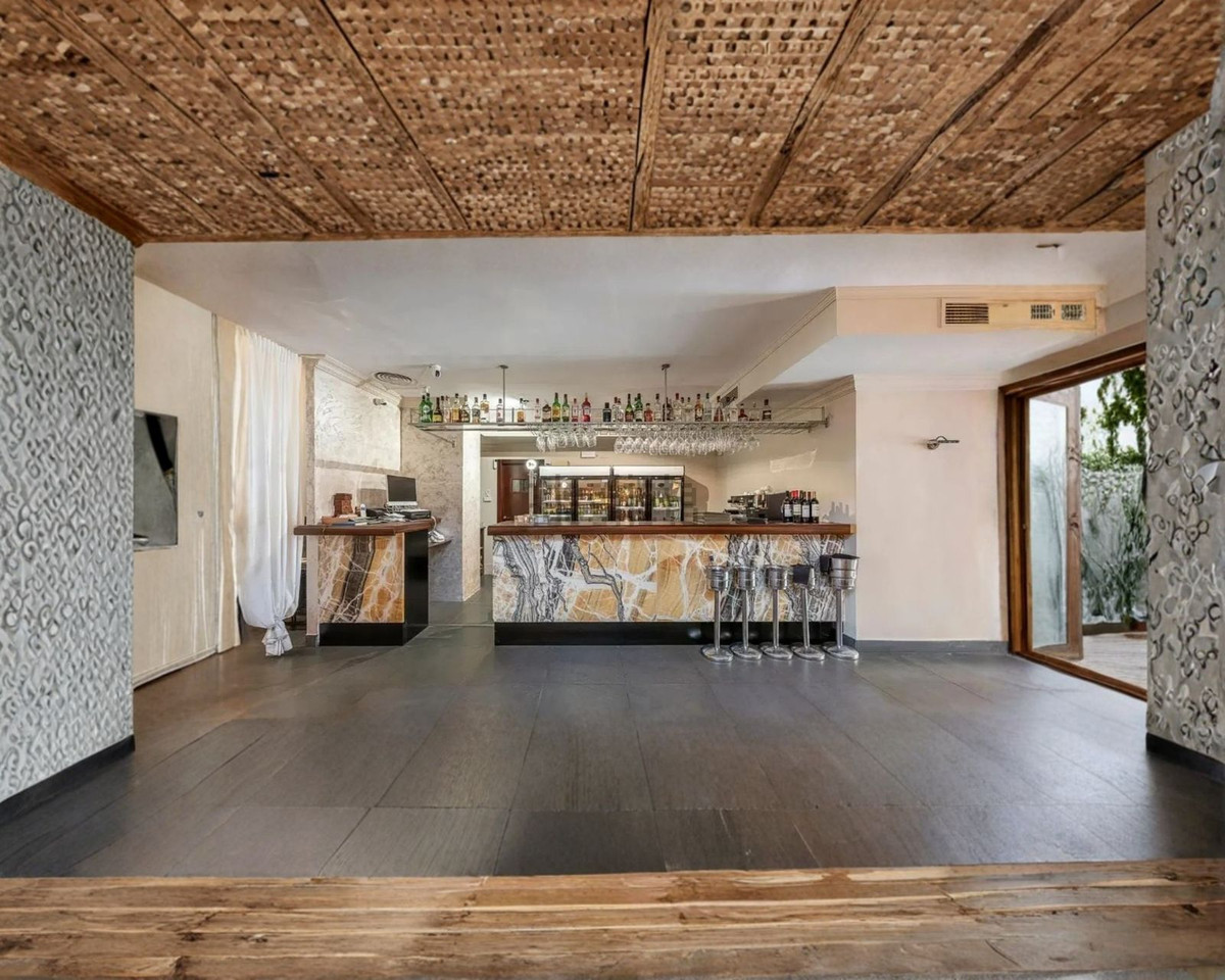 It has a bar that can be used for cocktails and a well-stocked display case at the entrance for displaying wines.