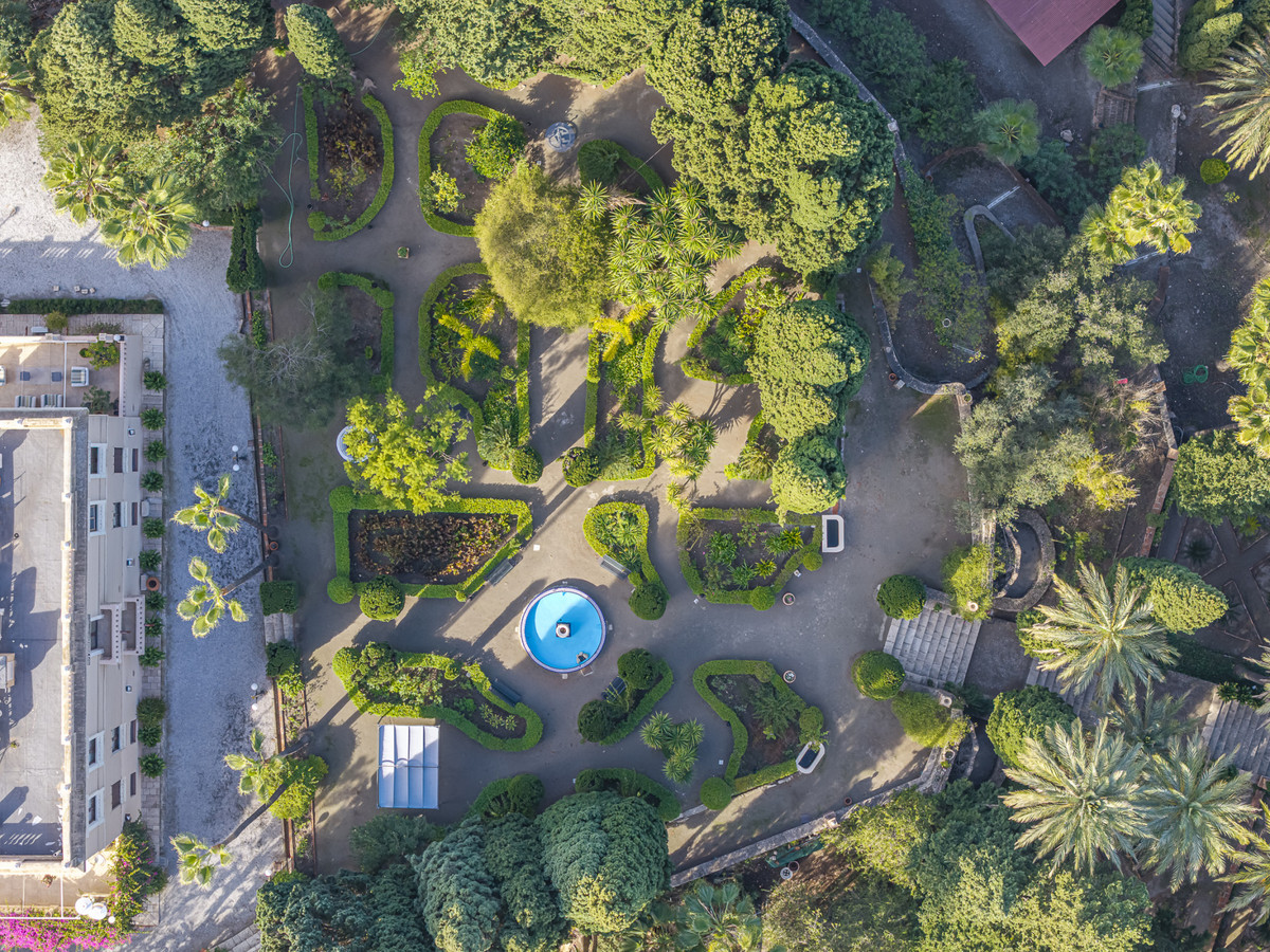 The property retains original architectural details throughout, including marble staircases and period features that reflect its Italian influences. Two botanical gardens frame the house: an 18th-century garden inspired by Granada's Generalife and a 19th-century romantic winter garden. A 40-step marble staircase connects both levels, culminating in two coral grottoes. The grounds shelter araucarias, magnolias, cypresses, a Lebanese cedar, and multiple palm varieties, including kentias, washingtonias, date palms and butia capitata. Seven fountains, some over 200 years old, punctuate the pathways. A rose garden adds seasonal colour. The orchards produce avocados, mangoes, persimmons, guavas, bananas, cherimoyas and oranges. A 13th-century Arab watchtower and wall stand on the property, alongside two Moorish aqueducts that once supplied the estate.