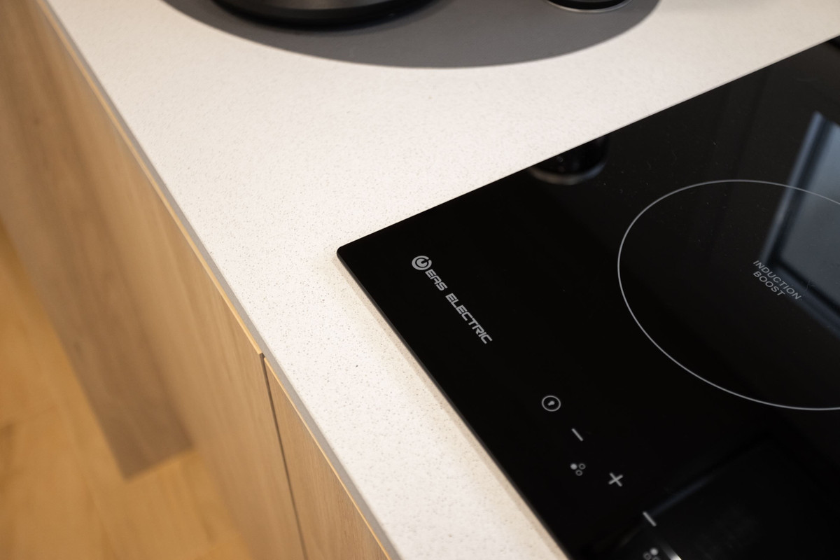 Lägenheten erbjuder genomgående fina materialval, lättmöblerade ytor och ett härligt ljusinsläpp. Vardagsrummet har plats för både matplats och loungehörna, medan köket är praktiskt utformat med goda arbetsytor och förvaring.