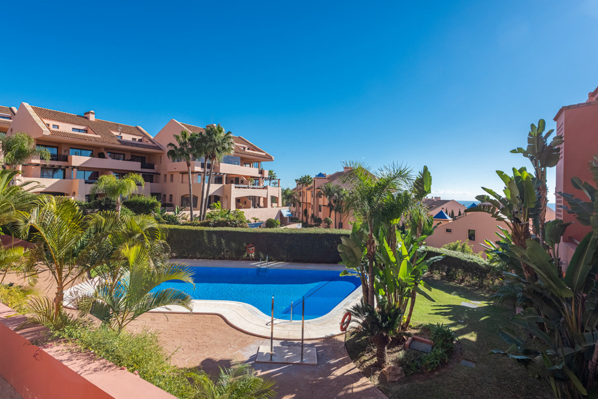 Hägt upp i Calahonda hittar du denna trevliga och öppna lägenhet med fantastisk panoramautsikt över havet.