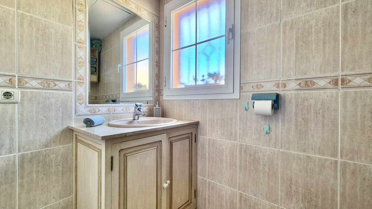 The main bedroom features an en-suite bathroom and direct access to the terrace, creating a peaceful retreat with plenty of natural light. The second bedroom is equally comfortable, supported by a well-appointed guest bathroom.