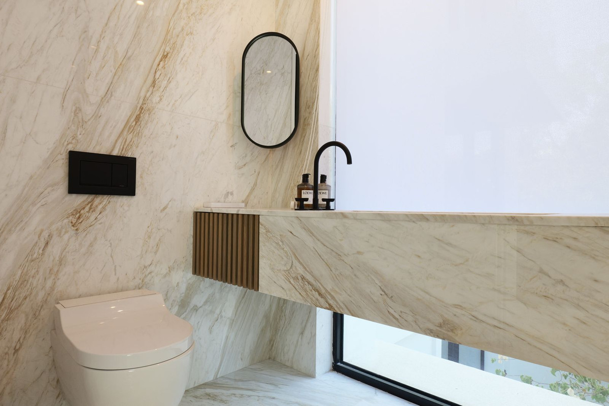 Boasting 7 spacious bedrooms and 8 beautifully designed bathrooms, the villa provides an ideal layout for large families, guests, or those seeking an opulent residence with ample privacy. Every space is bathed in natural light and furnished to the highest standards, ensuring a warm, inviting, and stylish atmosphere throughout.