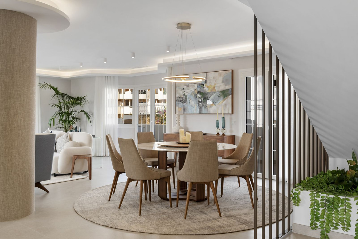 Penthouse Las Lolas is one of those rare residences that immediately conveys harmony, style, and thoughtful design. Positioned at the top of one of Nueva Andalucía's best-located buildings, and just minutes from both Marbella Arena and Puerto Banús, this home offers a unique combination of tranquility, convenience, and breathtaking views. Here, Mediterranean living meets modern architecture in a dual-level penthouse featuring 304 m² of interior space and 100 m² of terraces, crafted to be enjoyed from morning to night.