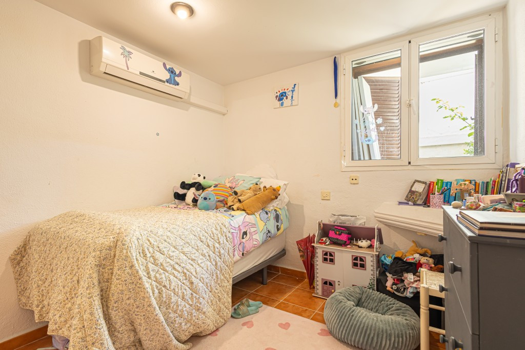 Main floor: Access via a 12-step staircase, entrance hall with built-in wardrobe, spacious living-dining room with storage closet and fireplace, access to a large southwest-facing terrace with dining table and barbecue overlooking the pool and communal garden.