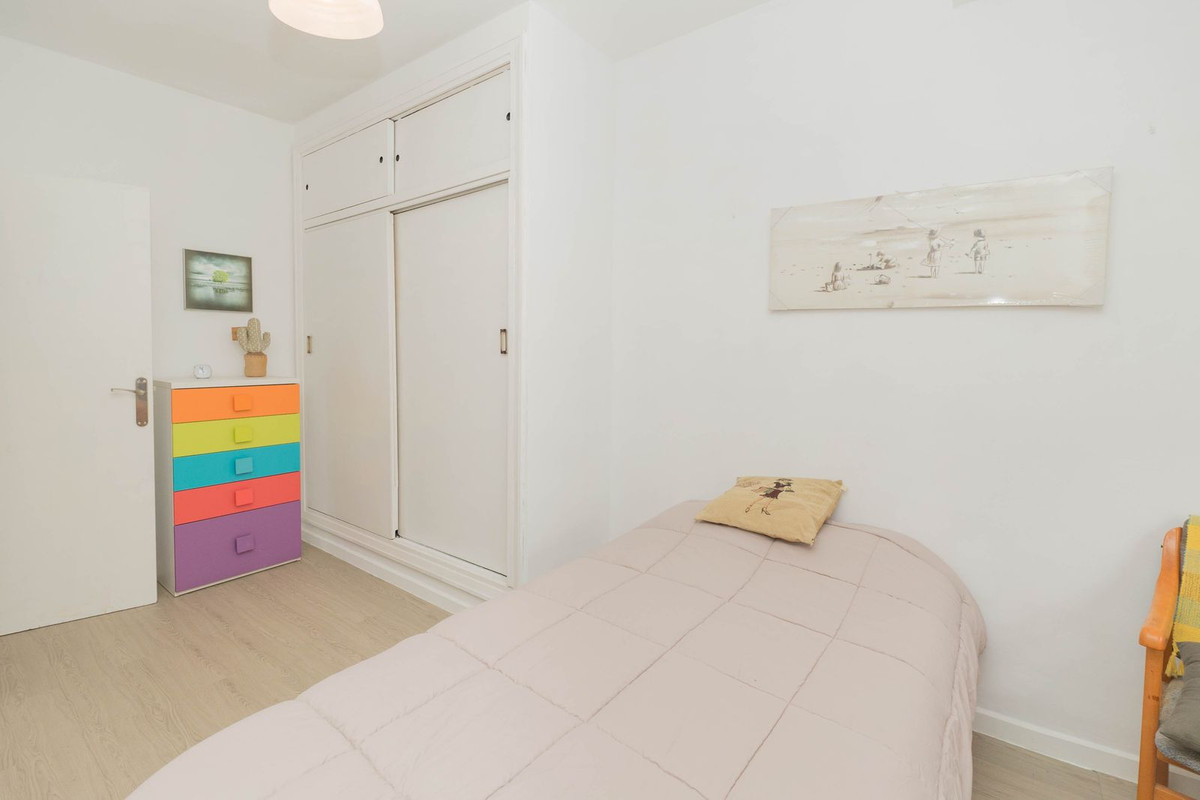 Vi presenterar denna välkomnande lägenhet belägen i hjärtat av Fuengirola. Med en byggd yta på 57 m² och en användbar yta på 57 m² är denna fastighet perfekt för dig som söker ett hem som kombinerar komfort och närhet till stranden; bara 800 meter från havet. Lägenheten har ett rymligt sovrum med dubbelsäng och ett sovrum med enkelsäng, perfekt för att underhålla gäster eller skapa ditt eget privata utrymme. Dess sydostliga läge garanterar gott om naturligt ljus hela dagen.