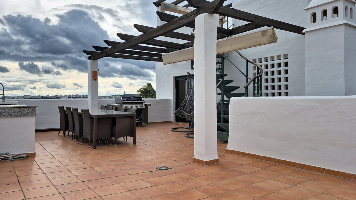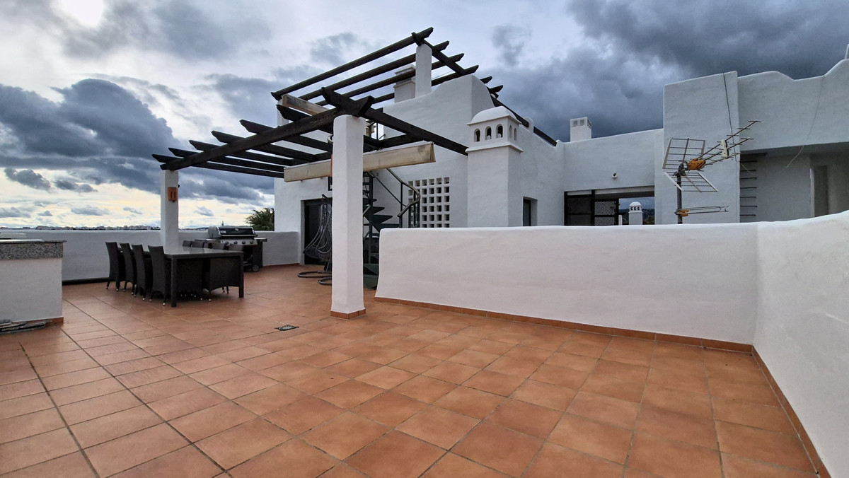 Located in a pleasant residential complex made up of 8 small three-storey buildings, this penthouse features a spacious living-dining room, a fully furnished and equipped kitchen with separate laundry room, 4 bedrooms —one of them a master suite with its private bathroom and access to the main terrace—, a second full bathroom, 3 beautiful large terraces totalling 180 m², and the solarium of over 120 m² with a pergola and the possibility of installing a jacuzzi or other outdoor features.