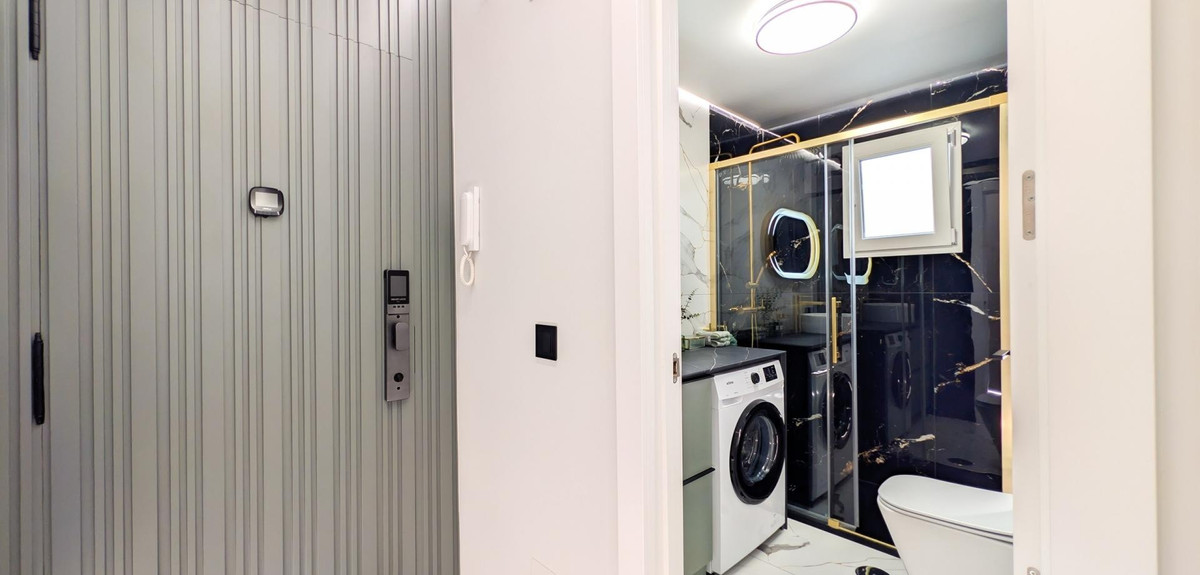 The open-plan layout makes the most of the space, and the home comes fully furnished with brand-new furniture and appliances, ready for immediate occupancy or rental. Underfloor heating adds year-round comfort, and an advanced electronic lock system provides both security and convenience.
