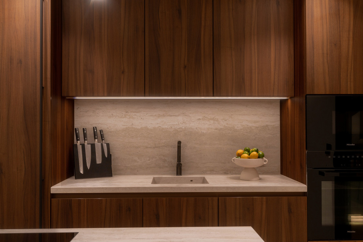 Entering inside, you'll find three bedrooms, each with its own full bathroom, along with a large dining table and a spacious living area with custom furniture-made by Aldecora.