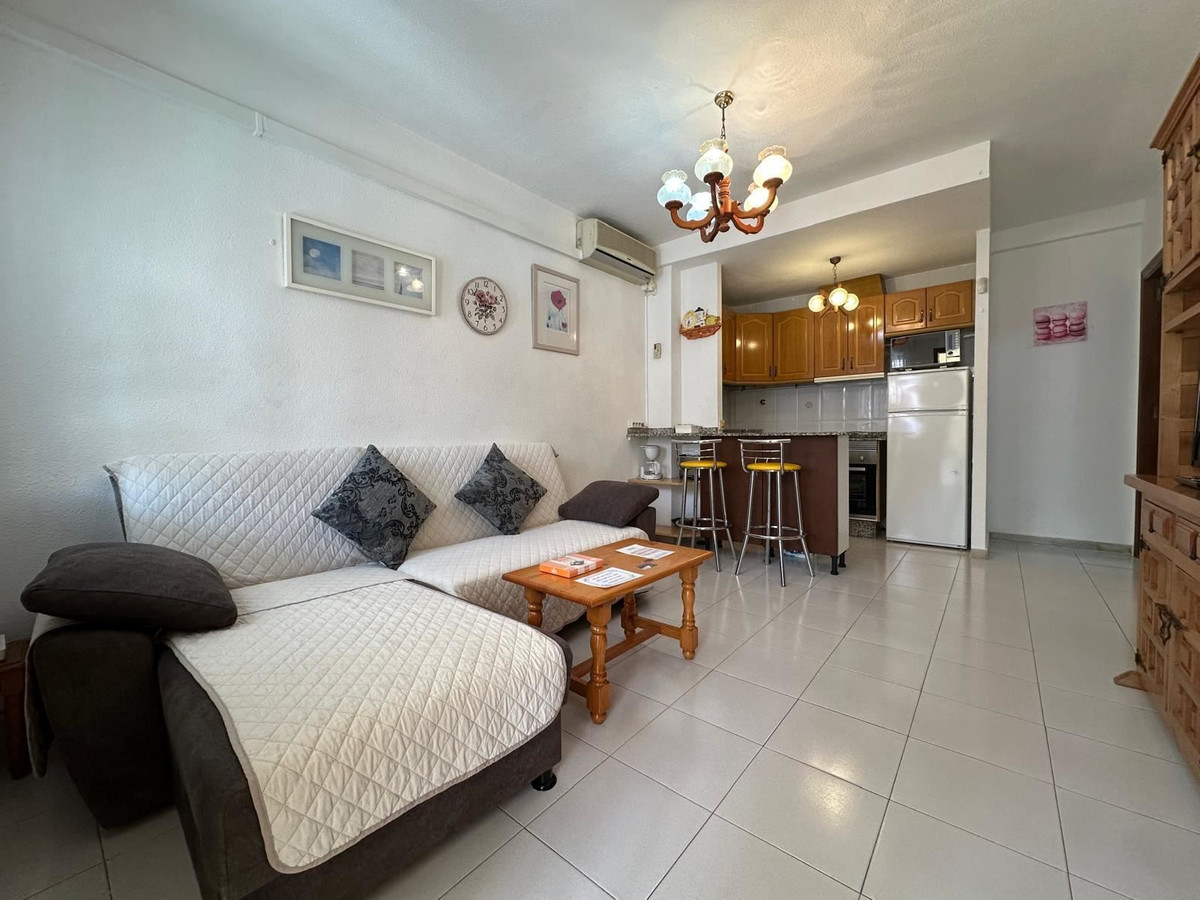 Lägenheten är smart planerad med ett luftigt vardagsrum som öppnar upp mot det funktionella köket, och ett rofyllt sovrum där du sover gott efter en dag på stranden. Det här är ett hem som passar lika bra som semesterbostad som för dig som söker ett enklare och bekymmersfritt permanentboende.