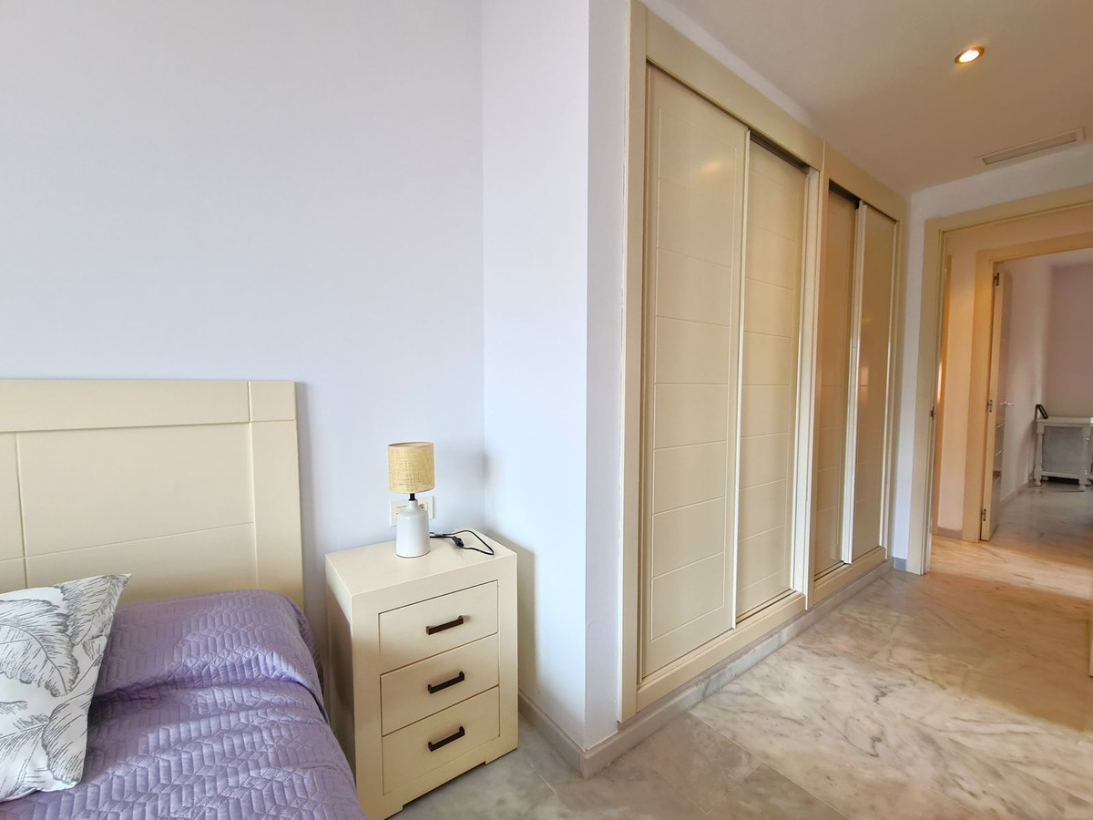 Belägen i en prestigefylld golfanläggning i västra Estepona, erbjuder denna rymliga lägenhet en unik investeringsmöjlighet. Med en giltig turistlicens kan du börja generera intäkter från semesteruthyrning från dag ett i ett område med hög efterfrågan. Fastigheten har en av de största planlösningarna i komplexet, för närvarande konfigurerad med tre sovrum och en separat matsal som enkelt kan stängas av för att skapa ett fjärde sovrum eller ett kontor, vilket erbjuder stor flexibilitet och ett mervärde som uppskattas mycket av både familjer och gäster. Lägenheten öppnar upp mot en ljus terrass med utsikt över poolen och de gemensamma utrymmena, med möjlighet att integrera en del av detta utrymme i vardagsrummet för att utöka sittgruppen – en förbättring som redan genomförts av andra ägare. Området genomgår för närvarande en fullständig renovering av sina fasader och pooler, vilket ytterligare kommer att förbättra anläggningens moderna och välskötta image. Dess omfattande faciliteter inkluderar en 18-håls golfbana, driving range, social club med restaurang och café, hotell och spa, omklädningsrum med bastu, 24-timmars privat säkerhet och ett evenemangscenter, allt inom en exklusiv och välskött miljö. Fastigheten inkluderar också en privat underjordisk parkeringsplats. Belägen bara några minuter från stränderna, marinan och Esteponas gamla stadskärna, kombinerar denna fastighet rymlighet, flexibilitet och hög lönsamhetspotential, vilket gör den idealisk för både investerare och de som söker ett rymligt semesterhus . ETT BESÖK REKOMMENDERAS STARKT.
