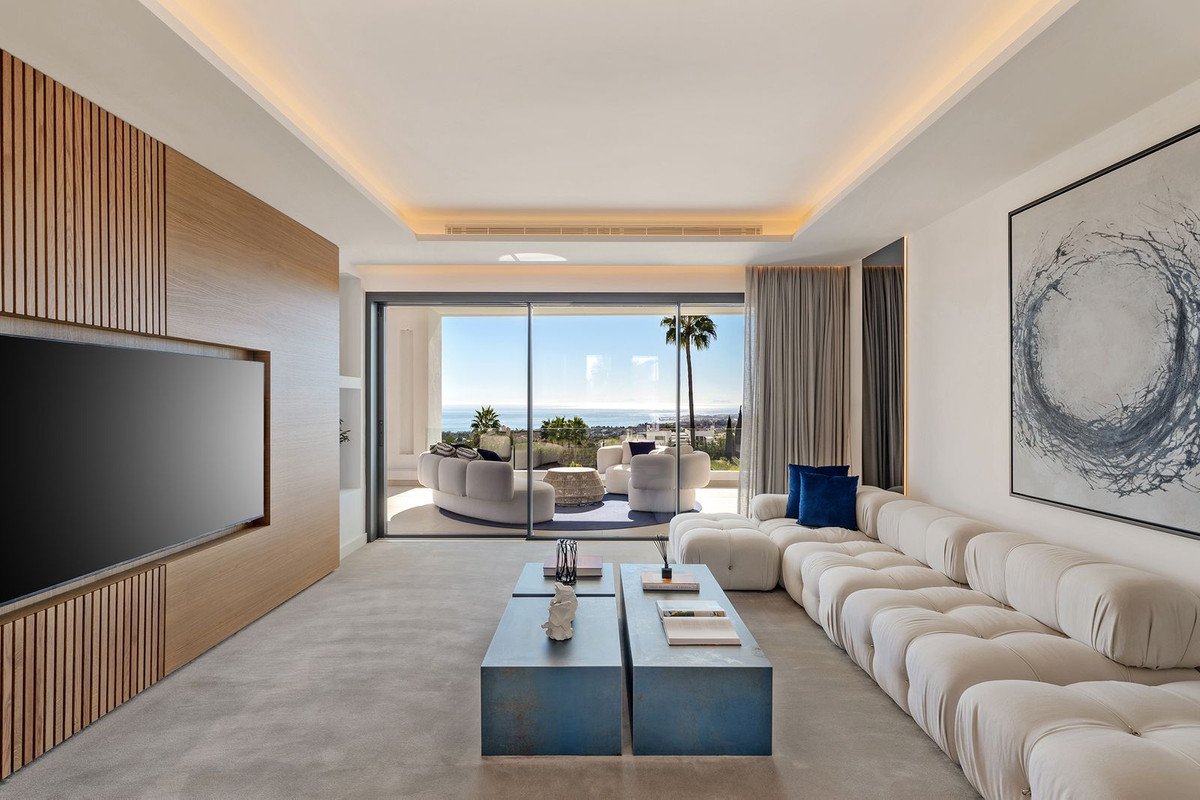 This exquisite villa is situated in a stunning location on the slopes of La Concha mountain within the prestigious private urbanization of Sierra Blanca, located on Marbella's Golden Mile. Here, serenity, a natural environment, and closeness to the city's most renowned landmarks create a tranquil atmosphere, just a few minutes away from Marbella's city center, the historic old town, the Roman Bridge, and Puerto Banús. The villa underwent a complete renovation in 2025. The furniture is available for purchase separately at a price of €350,000 plus VAT. Notable features include aerothermal heating, an automatic irrigation system, glass doors, built-in wardrobes, a laundry area, an open-plan fully equipped kitchen/living room, 24-hour security, a wine cellar, air conditioning, a barbecue, double glazing, a guest toilet, marble flooring, a sauna, a gym, underfloor heating, an alarm system, a basement, furnishings, security cameras, a cinema room, a fireplace, a private community, a jacuzzi, a Turkish bath, a dressing room, porcelain tile flooring, and more.