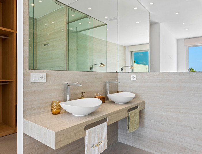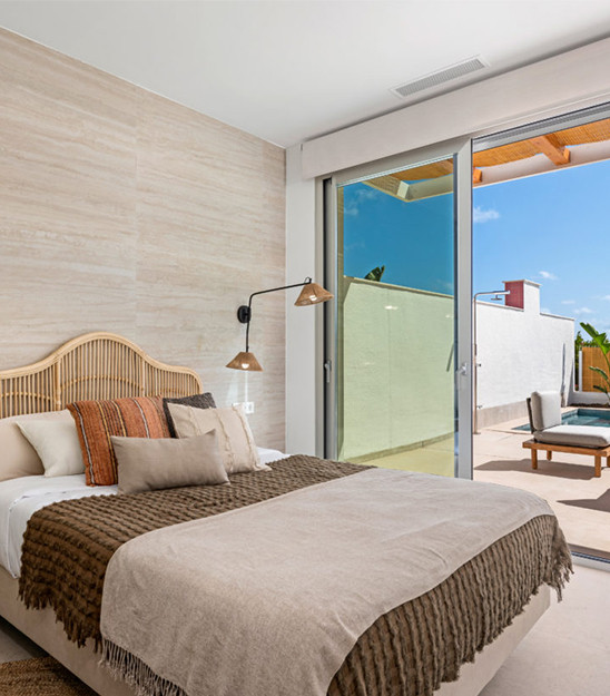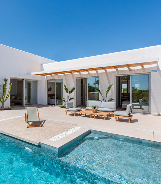 Bostadsområdet består av 6 radhus i ibizisk stil på egna tomter med terrass, loungeyta, parkering och privat pool. Bostäderna har vardagsrum/matplats, ett utrustat kök, 3 sovrum, 2 badrum, en skafferi/förråd samt ett solarium med privilegierad utsikt. Samtliga är omsorgsfullt utformade med material av hög kvalitet för att tillfredsställa de mest krävande kunderna.