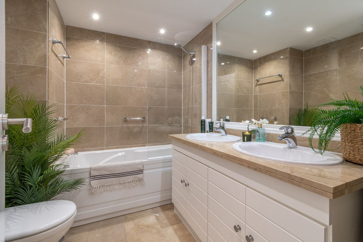 Denna lägenhet erbjuder inte bara lyxigt boende utan också en betydande uthyrningspotential tack vare dess rymlighet, tillgång till trädgård och pool samt utmärkta läge. Sådana premiumlägenheter blir sällsynta i Golf Resort Torrequebrada.