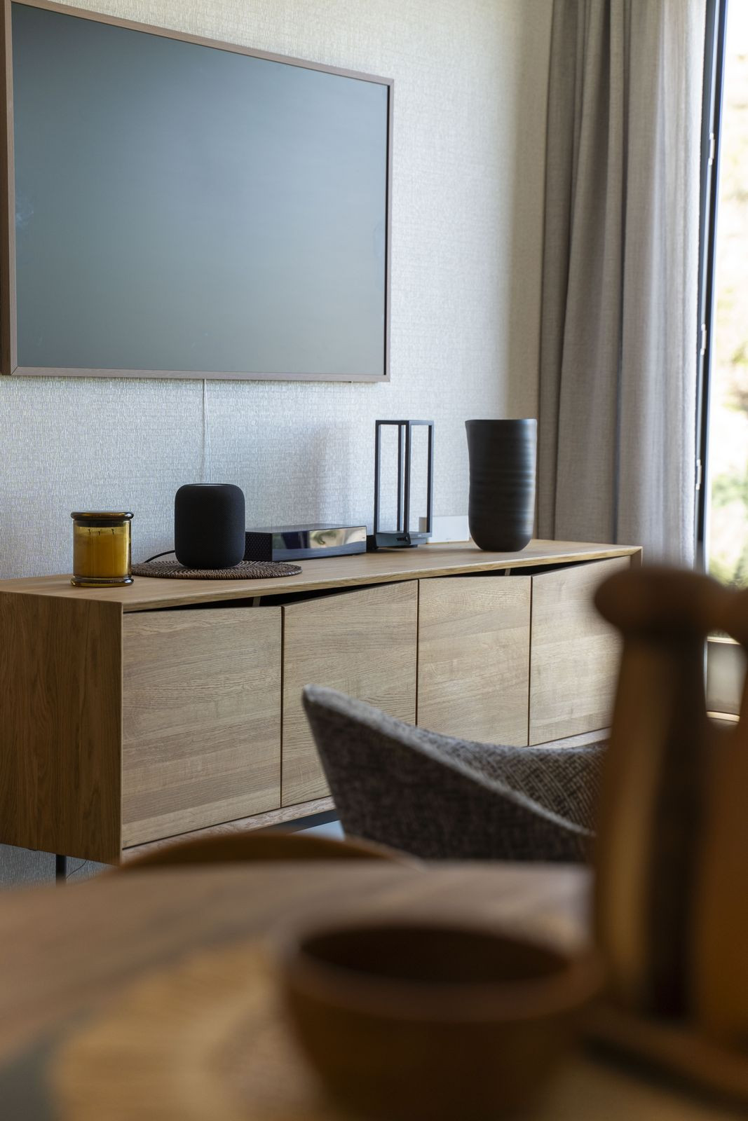 Underfloor heating in the bathrooms, remote control of heating and air conditioning, remote control of lighting, blinds, and selected electrical sockets. Retractable awnings.