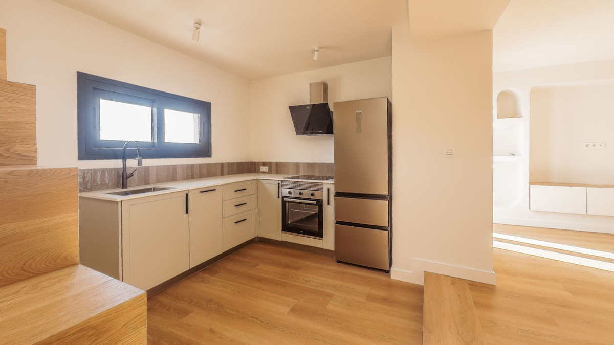 Upon entering, you are welcomed into a beautifully bright living room with an open-plan kitchen fully equipped with all necessary appliances, and of course, air conditioning.