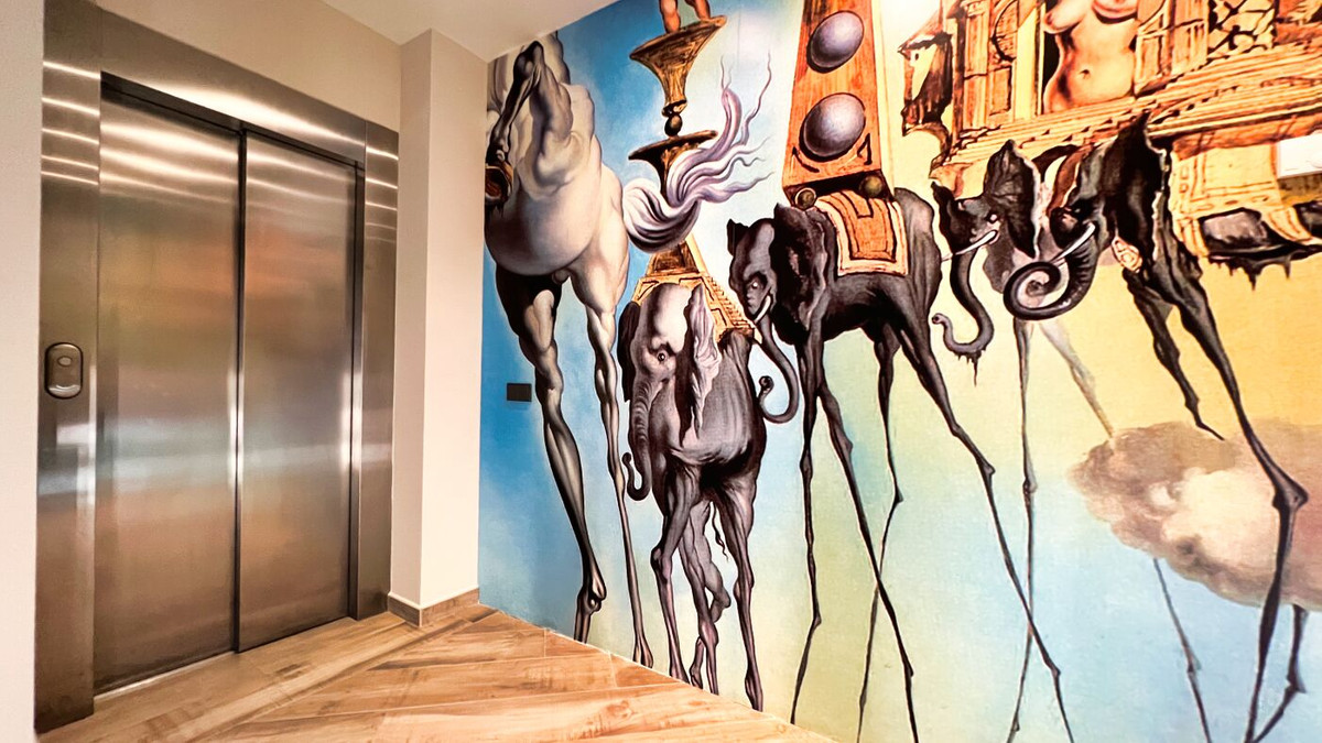 The property offers a range of luxury amenities, including a lift for easy access to each level, a large saltwater pool for summer days, an additional space with a jacuzzi and sauna for your moments of relaxation, an elegant Art Nouveau fireplace for cooler evenings, and a spacious car park for several vehicles.