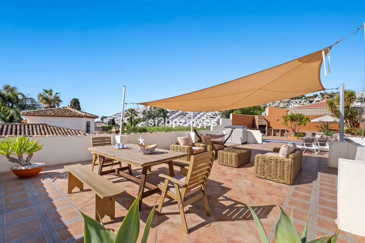 En fantastisk takterrass med privat pool och gott om plats för såväl matbord, loungegrupp, solsängar och grillplats - allt du önskar dig av ett boende utmed den Spanska kusten. Här får du en riktig härlig oas med utsikt över havet, bergen och de vackra villorna i omgivningen.