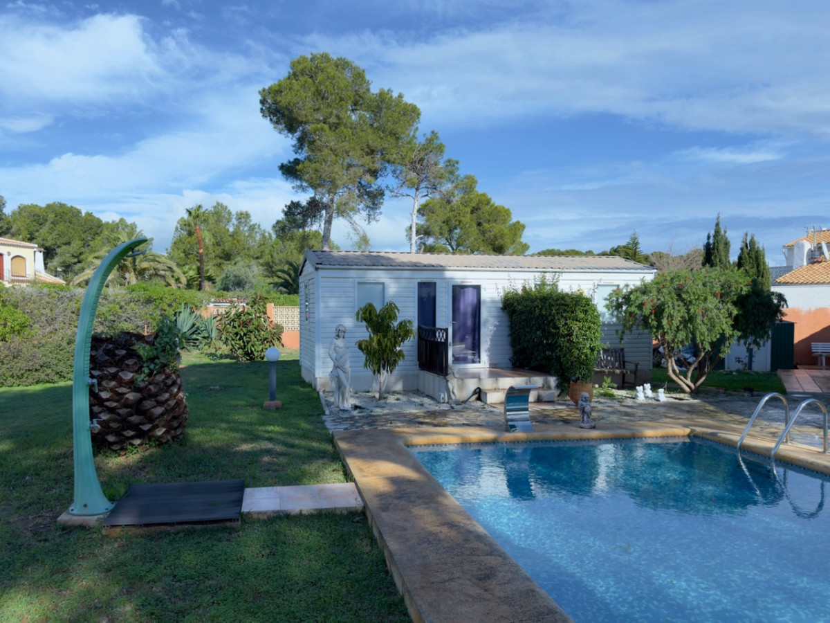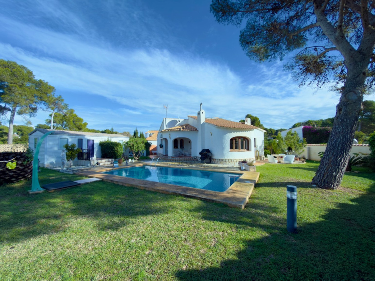 Property FeaturesBuilt Area: 123 m² on a generous plot of 1303 m².Bedrooms: 2 comfortable rooms designed for rest.Bathrooms: 2 bathrooms, ideal for the comfort of your family and guests.Mobile Home: In addition, the house includes a comfortable two-bedroom mobile home, with a bathroom and toilet, perfect for guests.Amenities and Additional FeaturesPool: Enjoy a refreshing swim on sunny days in your own pool.Air Conditioning and Heating: Equipped with split air conditioning and heating systems for your comfort year-round.Open Plan Kitchen: A modern and functional space that integrates with the living area.Garden and Outdoor Spaces: A well-maintained outdoor garden, ideal for relaxing or enjoying outdoor gatherings.Garage and Parking: Ample space for your vehicle, plus additional amenities including storage and barbecue.Security System: Alarms and fencing for your peace of mind.Outdoor Shower: Perfect for refreshing after a day by the pool.Furniture Included: The house comes fully furnished, ready for you to move in.Surroundings and LocationLiving in Jávea means enjoying an unparalleled natural environment. With crystal-clear beaches, hidden coves, and mountains that offer spectacular views, this town is an ideal destination for nature lovers and outdoor enthusiasts. Additionally, it has a good selection of restaurants and shops that enhance the quality of life.