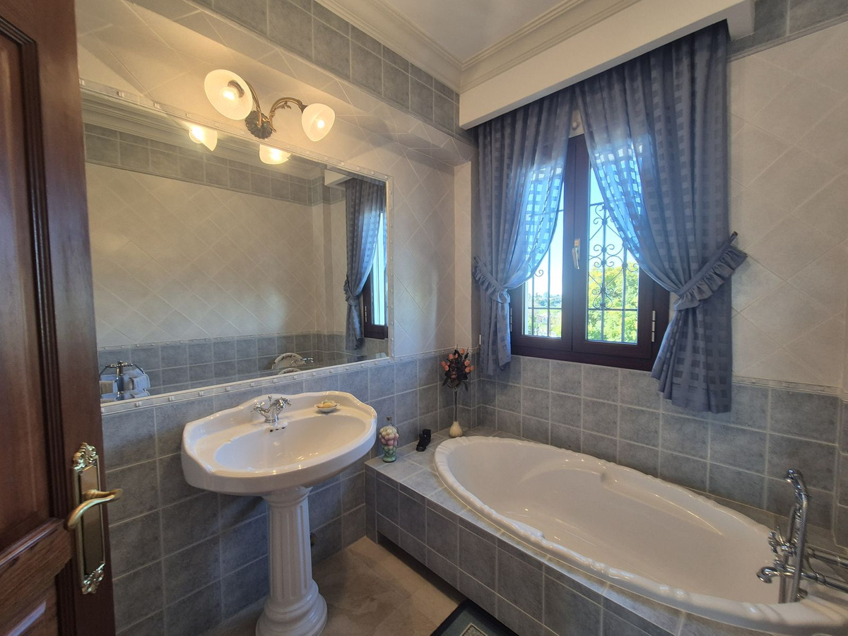 The villa offers a private garden, swimming pool, and an excellent BBQ area, perfect for enjoying the Mediterranean climate. Highlights include marble details, decorative staircases, and a solid construction from the year 2001. Includes a water tank.