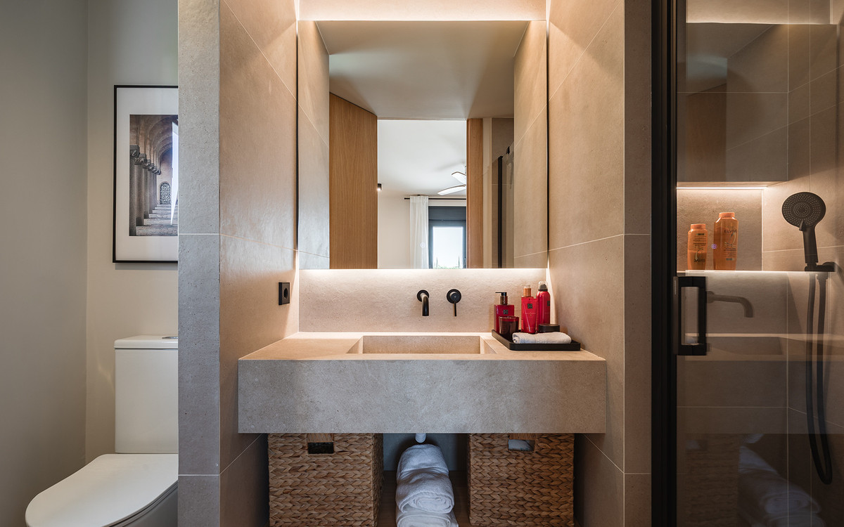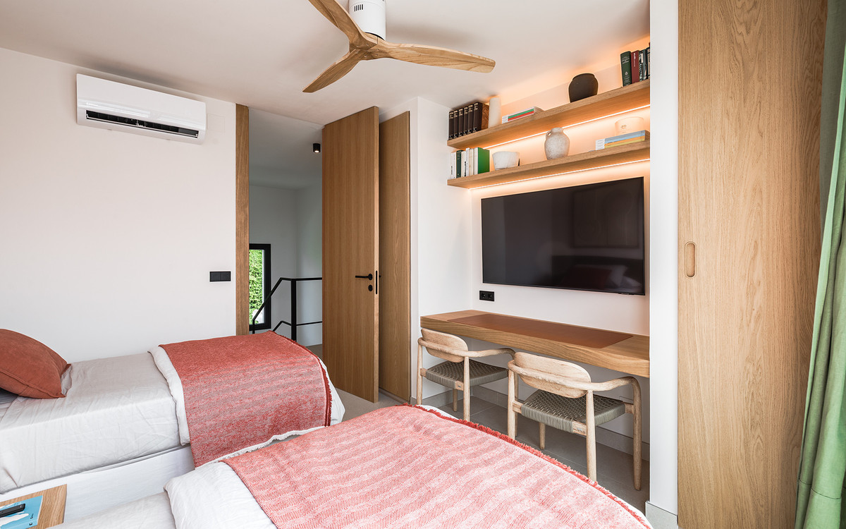 Villan erbjuder sex dubbelrum, fem badrum, varav fyra är en suite, samt två gästtoaletter. Tre av sovrummen har direkt tillgång till en terrass med utsikt över bergen och den natursköna omgivningen. Det finns parkeringsplats för två bilar samt laddstation för elbil.