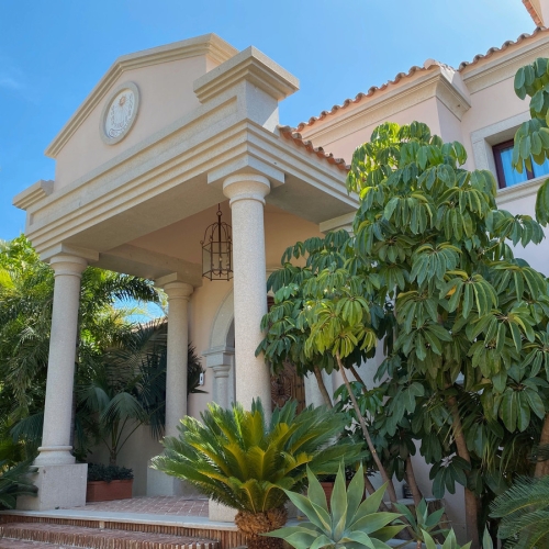 Exklusiv villa med modern design och subtila andalusiska inslag, belägen på en rymlig och privat plan tomt i Huerta del Prado, endast 5 minuters bilresa från stranden, La Cañada köpcentrum och Marbellas Golden Mile.