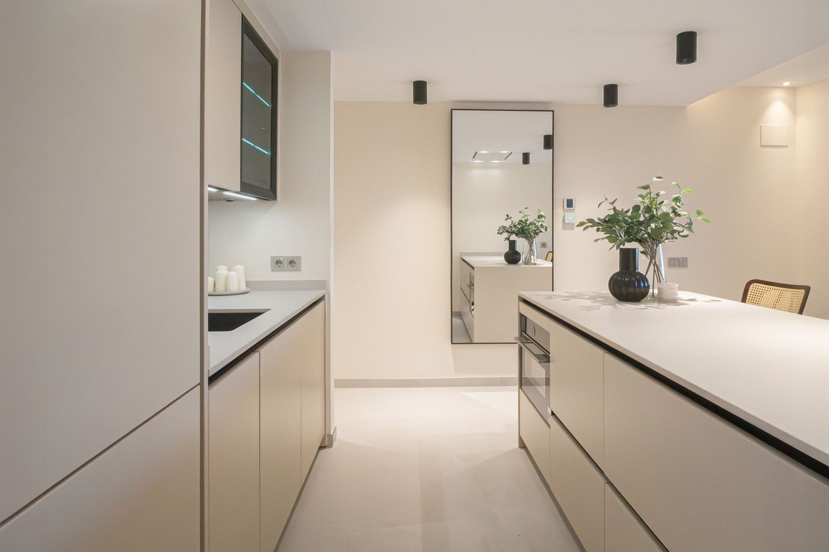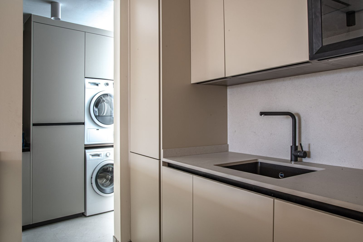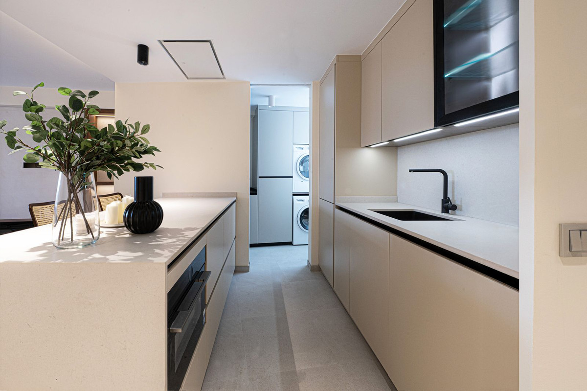 It features a large open-plan living and dining room leading to a spectacular kitchen with a breakfast bar and Dekton countertops, a fully equipped laundry room with Bosch appliances, three bedrooms with built-in wardrobes, two full bathrooms with showers, and two terraces where you can enjoy the views.