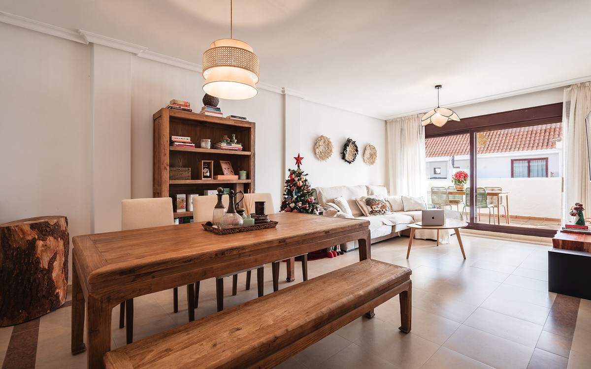 Denna utsökta trerumslägenhet är idealiskt belägen i hjärtat av Nueva Andalucía, med närhet till alla bekvämligheter och endast några minuter från stranden. Bostaden är belägen på första våningen i ett charmigt, inhägnat bostadsområde och kombinerar modern komfort med den tidlösa attraktionskraften hos andalusiskt boende.