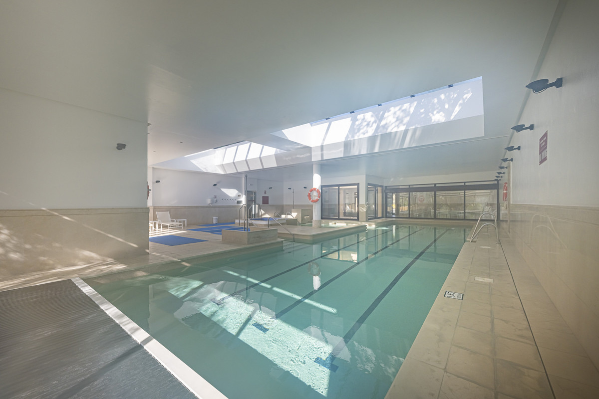 Residents enjoy 24-hour concierge service, a heated indoor pool, fitness centre, sauna and steam room, and three outdoor swimming pools, all set within beautifully maintained gardens that offer a peaceful, resort-style atmosphere.