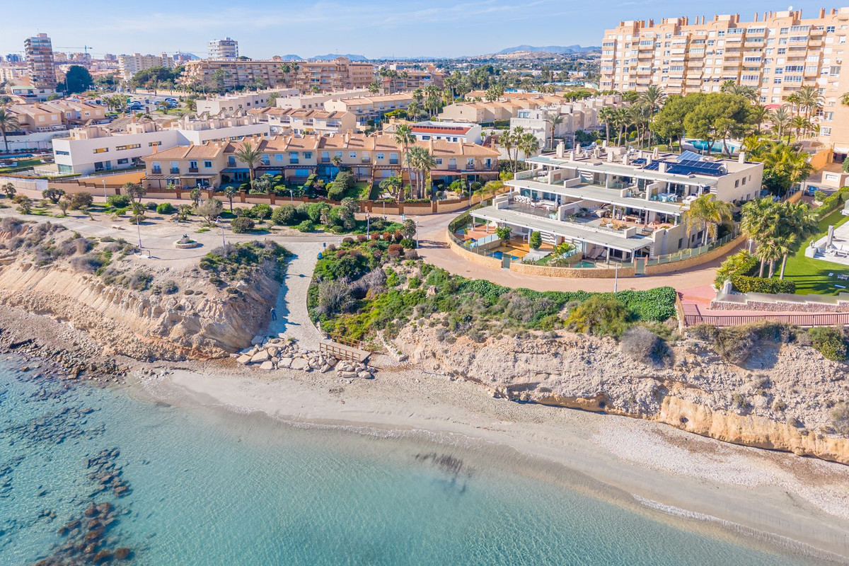 Nestled in one of the most exclusive locations on the Costa Blanca, directly on the beachfront and facing the archaeological site of the Banos de la Reina, next to the marina of El Campello (Alicante), this extraordinary corner duplex penthouse with private pool occupies the top floor of a singular and exclusive building, set within a quiet cul de sac.
