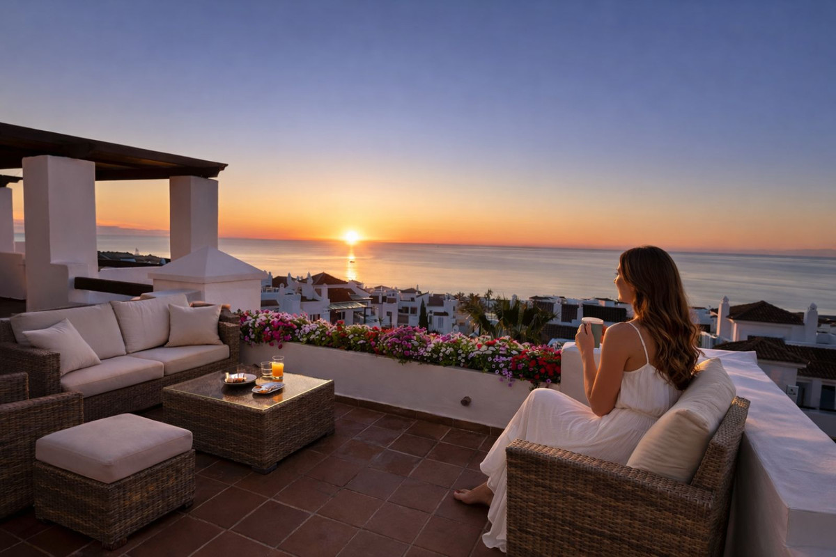 Discover this exceptional penthouse offering breathtaking panoramic views of the Mediterranean Sea, the Rock of Gibraltar and Punta Carbonera lighthouse. A truly privileged setting where natural light, open views and a sense of space create a unique living experience. The landscape feels like a living painting, changing throughout the day.
