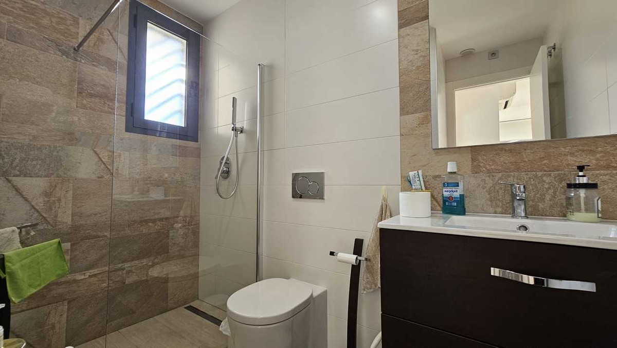 This beautifully designed modern semi-detached home offers refined living with open sea views enjoyed from an elevated, tranquil setting. Positioned overlooking one of two community swimming pools and located just steps away, the home features three elegant bedrooms and two bathrooms, thoughtfully arranged for comfort and functionality. A bright and versatile solarium enhances the living space, providing an ideal area to relax or entertain while enjoying the surrounding outlook. Residents benefit from access to two immaculate communal pools, along with the convenience of a private underground parking space and an additional driveway directly in front of the home. Additional features include air conditioning throughout, heated floors, and thoughtfully designed outdoor spaces, combining comfort, style, and practicality. Perfectly located, the property is within easy reach of supermarkets, bars, and restaurants, ensuring everyday convenience and vibrant lifestyle options. With clean architectural lines, quality finishes, and a well-balanced layout, this property is ideal as a primary residence or a stylish retreat, offering modern luxury, space, and views without coastal exposure.