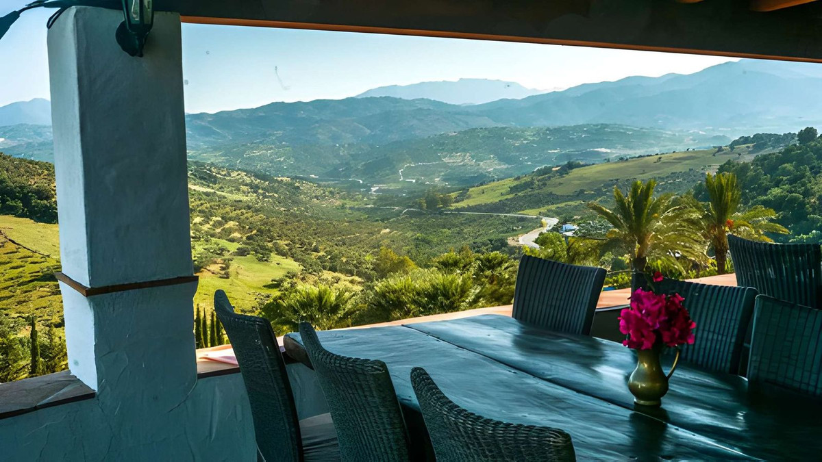 Fastigheten ligger på en stor tomt på 46 718 m² och erbjuder avskildhet, natur och en fantastisk panoramautsikt över de omgivande bergen.