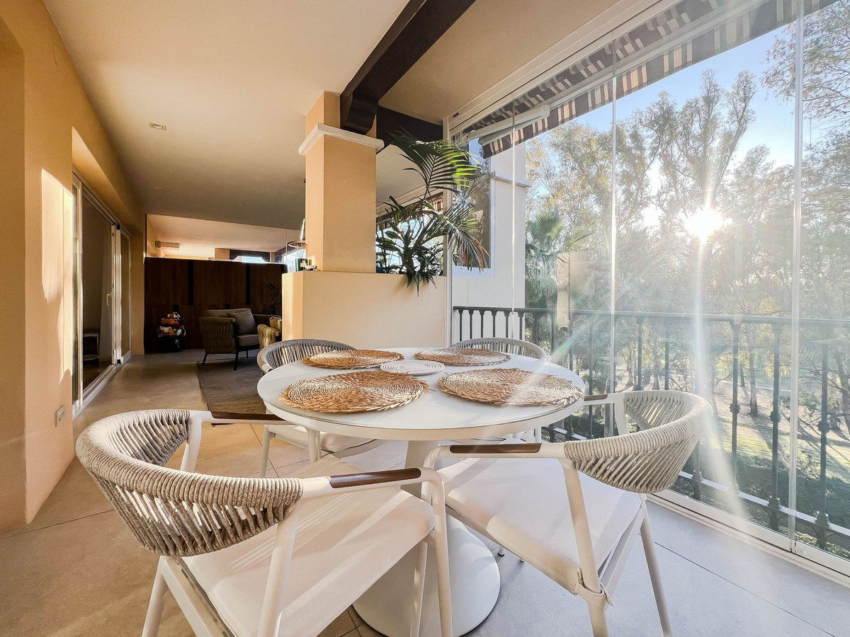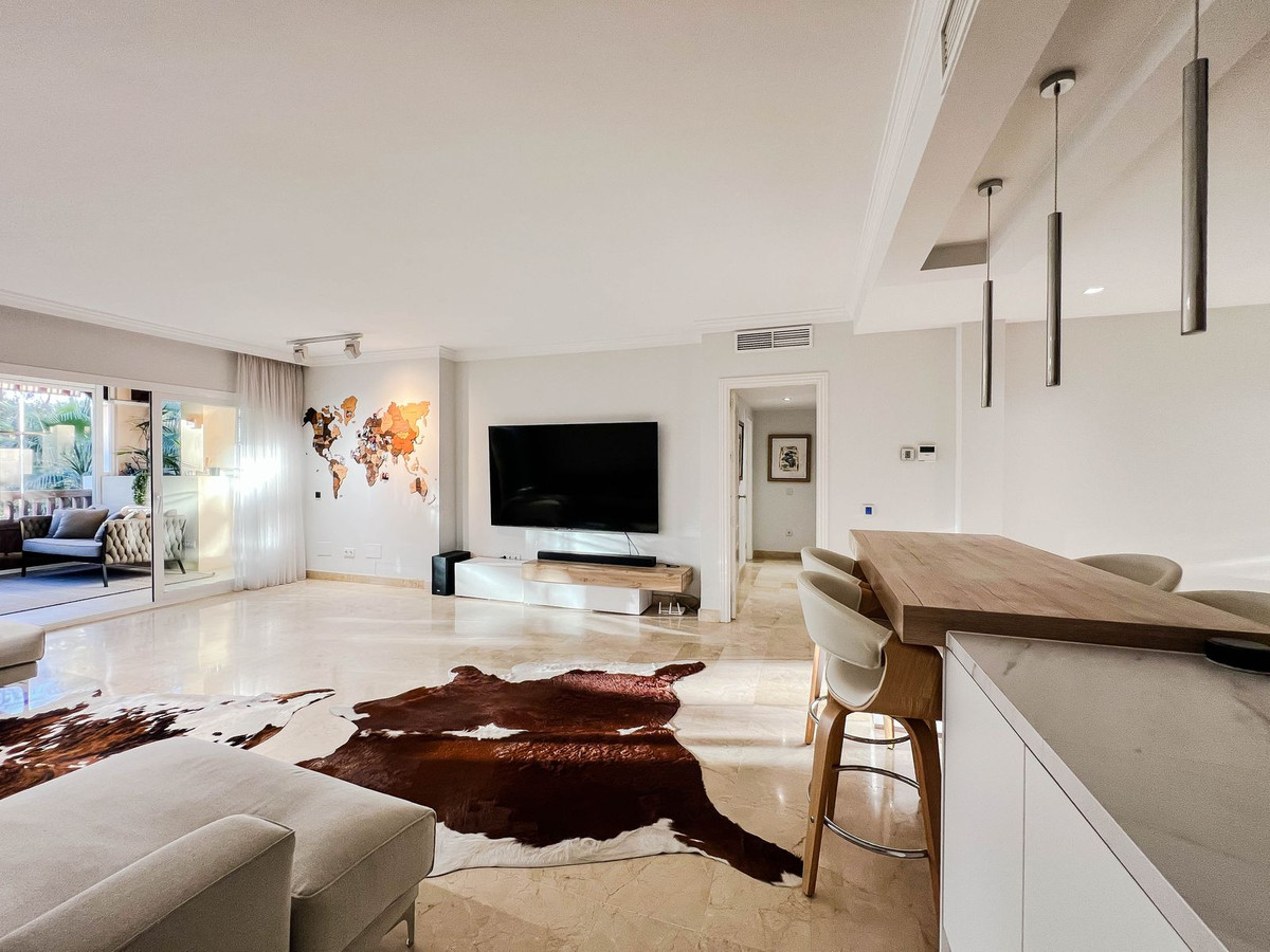 Magnificent 2-bedroom, 2+1-bathroom apartment located in the prestigious Marqués de Atalaya development, set on the front line of the golf course and recently subjected to a full high-end renovation. As a corner apartment, it benefits from all exterior windows, offering exceptional natural light throughout the day and an outstanding level of privacy.