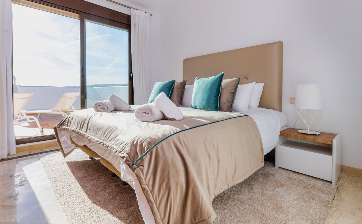 New to the market, ready to move into 3 bed / 3 bath penthouse, South-West facing with amazing sea and golf views