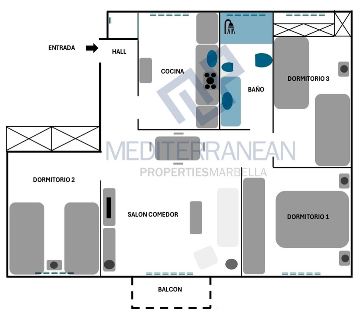 Discover this cosy 3-bedroom, 1-bathroom apartment located in an Andalusian-style neighbourhood in a quiet area with squares, gardens, fountains and cobbled streets, next to Marbella's old town and city centre.