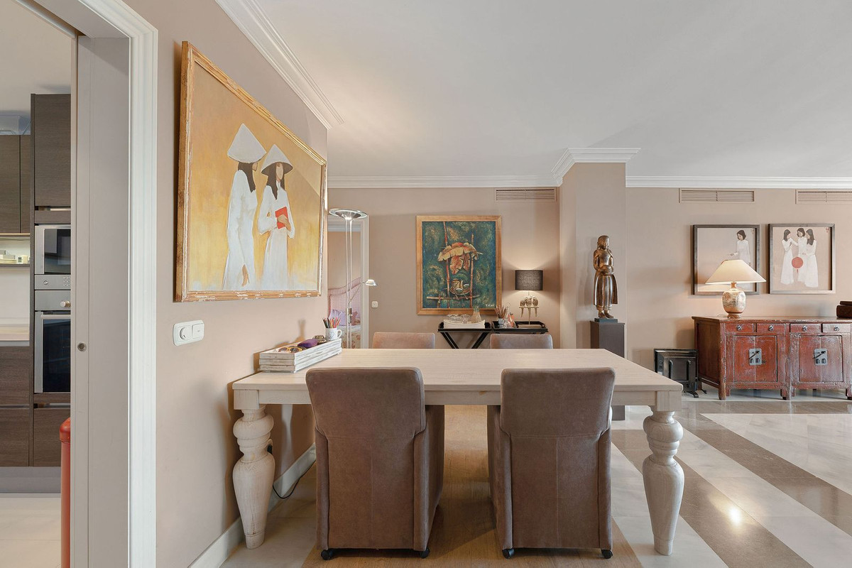 This apartment is for sale in the desirable Monte Halcones community in La Quinta, offering a unique opportunity to enjoy refined coastal living on the Costa del Sol. This elevated ground floor two-bedroom apartment combines classic Spanish design with modern comfort, making it an excellent choice for a permanent residence, holiday home, or investment property. The property sits on an elevated plot and is conveniently close to the Monte Halcones Commercial Center. Here, residents have easy access to boutique shops, cafés, bars, a pharmacy, and a mini-market, all just a short walk away. This location offers a balance between a quiet residential feel and everyday convenience. The apartment offers 145 square meters of interior living space and a spacious 48 square meter south-facing terrace designed for maximum light and outdoor enjoyment. Inside, the large lounge is bright and comfortable, ideal for relaxing or hosting guests. The separate kitchen has been fully renovated with high-quality Bosch appliances and elegant finishes, providing a practical and attractive cooking space. There are two generously sized bedrooms, each with its own en-suite bathroom for added privacy and comfort. The master bedroom opens directly onto the terrace, bringing in natural light and allowing easy access to the outdoor areas. The terrace is a standout feature, offering panoramic views of the Mediterranean Sea and surrounding mountains. With a built-in rustic outdoor kitchen, this space is perfect for outdoor dining and entertaining family and friends. The gated community includes landscaped gardens and a communal swimming pool, creating a quiet and private atmosphere. The apartment also features a large internal storage room, adding convenience and offering potential for further customization. With minimal changes, it is possible to convert the layout into a three-bedroom apartment with an open-plan kitchen, which would increase its value and appeal. Inside, the apartment includes quality finishes such as classic furnishings, marble flooring, and large windows that allow for a smooth connection between indoor and outdoor spaces. The design focuses on practical comfort rather than unnecessary ornamentation. The apartment is a strong option for buyers looking for a well-located, functional, and comfortable home for sale in one of the most attractive areas near Benahavís. It offers a secure, elegant, and flexible living space that suits modern lifestyles on the Costa del Sol.