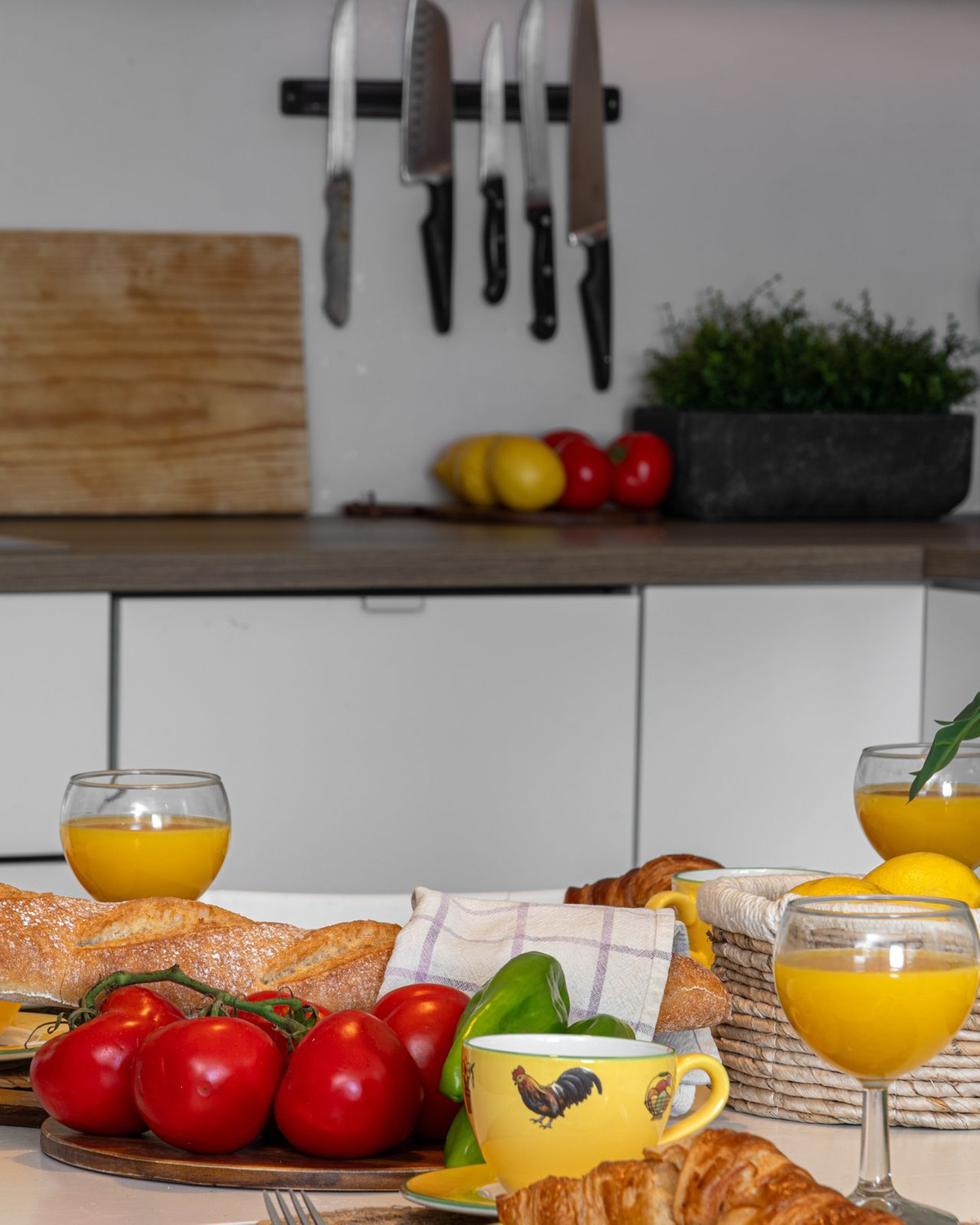- Vardagsrum och kök: Ljust och luftigt med stora fönster som öppnar upp mot terrassen. Plats för en stor soffa, förvaringsmöbel och ett stort matbord där du kan njuta av måltider med goda vänner. Öppet kök och fullt utrustat med diskmaskin, kyl/frys, spis, ugn och mikrovågsugn.